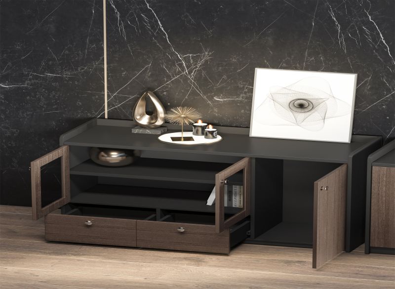 1、貼面材料:采用進(jìn)口天然直紋胡桃木皮,厚度0.6mm;對紋、對色加工 2、封邊用材:與貼面相同的木皮封邊; 3、基材:采用“上思華林”E0級高密度板; 4、油漆:面漆采用“華潤”PU聚脂漆; 5、五金配件:博格維斯品牌配件。